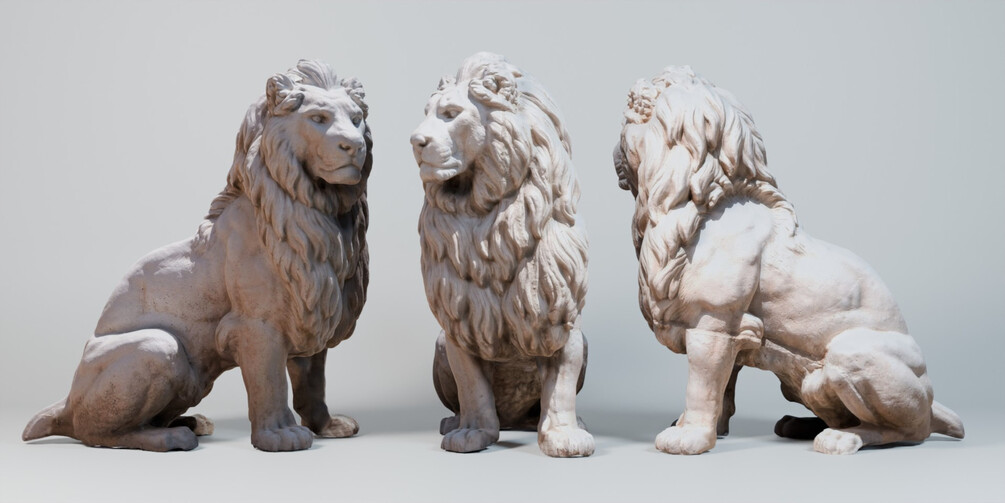 Photogrammetry scanned lion statue. It has been cleaned & remeshed and includes these four versions;